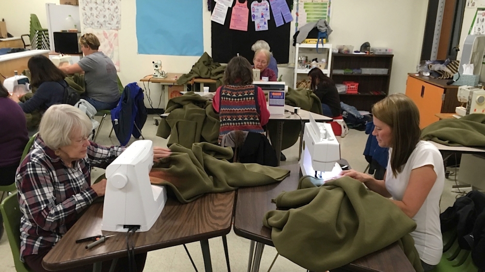 Sewing the blankets